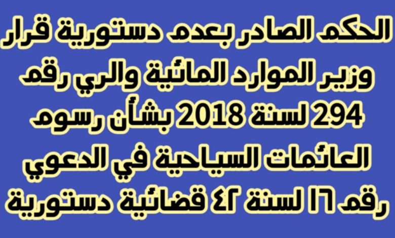 المحكمة الدستورية تقضى بعدم دستورية الرسوم المفروضة على العائمات السياحية – الحكم الصادر بعدم دستورية قرار وزير الموارد المائية والري رقم 294 لسنة 2018 بشأن رسوم العائمات السياحية – عدم دستورية رسوم العائمات السياحية بحكم المحكمة الدستورية العليا رقم 16 لسنة 42 قضائية