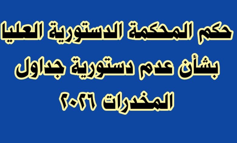 حكم المحكمة الدستورية العليا بشأن جداول المخدرات – عدم دستورية جداول المخدرات 2026 – عدم دستورية قرار رئيس هيئة الدواء – حكم المحكمة الدستورية في الدعوي رقم 33 لسنة 47 قضائية