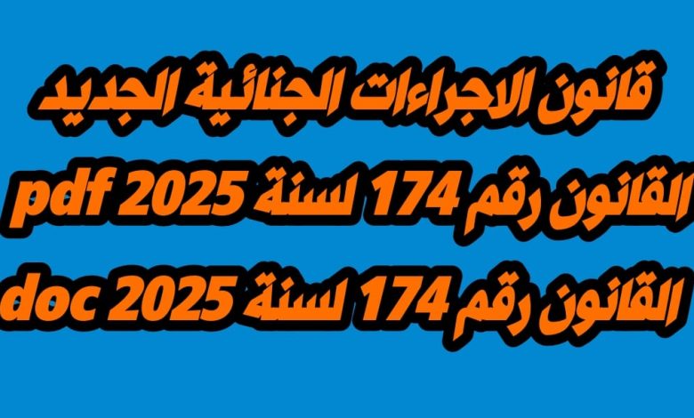 قانون الاجراءات الجنائية الجديد 2025 – قانون الاجراءات الجنائية الجديد pdf – قانون الاجراءات الجنائية المصري – نصوص مواد قانون الإجراءات الجنائية الجديد – قانون الإجراءات الجنائية الجديد 2025 PDF – تعديلات قانون الإجراءات الجنائية الجديد word – موعد تطبيق قانون الإجراءات الجنائية الجديد – قانون الإجراءات الجنائية الجديد doc – القانون رقم 174 لسنة 2025 pdf – القانون رقم 174 لسنة 2025 doc