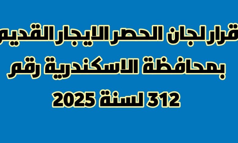 قرار لجان الحصر بمحافظة الاسكندرية رقم 312 لسنة 2025 بشأن تقسيم المناطق التي بها أماكن مؤجرة لغرض السكني الخاضعة لأحكام القانون رقم ١٦٤ لسنة ٢٠٢٥- قرار لجان الحصر الايجار القديم بمحافظة الاسكندرية
