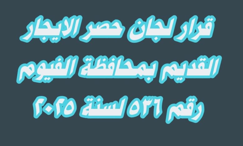 قرار لجان الحصر بمحافظة الفيوم رقم 536 لسنة 2025 بشأن تقسيم المناطق التي بها أماكن مؤجرة لغرض السكني الخاضعة لأحكام القانون رقم ١٦٤ لسنة ٢٠٢٥- قرار لجان الحصر الايجار القديم بمحافظة الفيوم