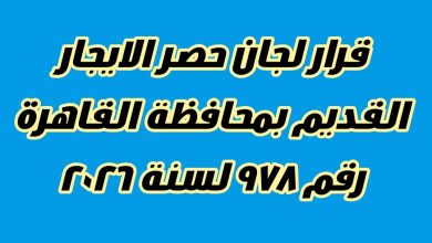 قرار لجان الحصر بمحافظة القاهرة رقم 978 لسنة 2026 بشأن تقسيم المناطق التي بها أماكن مؤجرة لغرض السكني الخاضعة لأحكام القانون رقم ١٦٤ لسنة ٢٠٢٥- قرار لجان الحصر الايجار القديم بمحافظة القاهرة